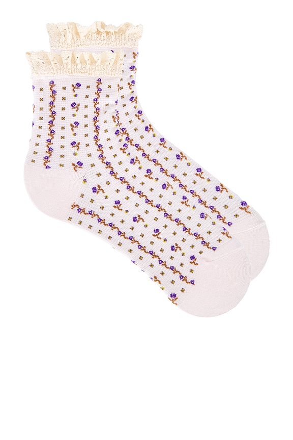 Rosebud Waffle Knit Ankle Socks In Heavenly Pink